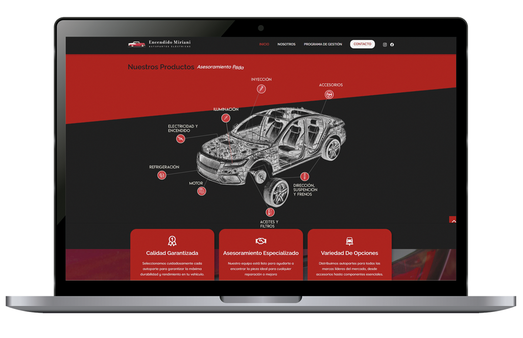 Diseñé una solución a medida para la distribuidora de autopartes, respetando su identidad de marca y creando el diseño desde cero. Además, ilustré un automóvil detallado que especifica las distintas partes del mismo. Como parte del proyecto, incorporé la opción para que los usuarios descarguen un programa de gestión con el stock completo de productos.